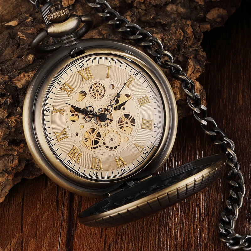Un élégant voyage dans le temps avec la montre de poche mécanique vintage bois bronze